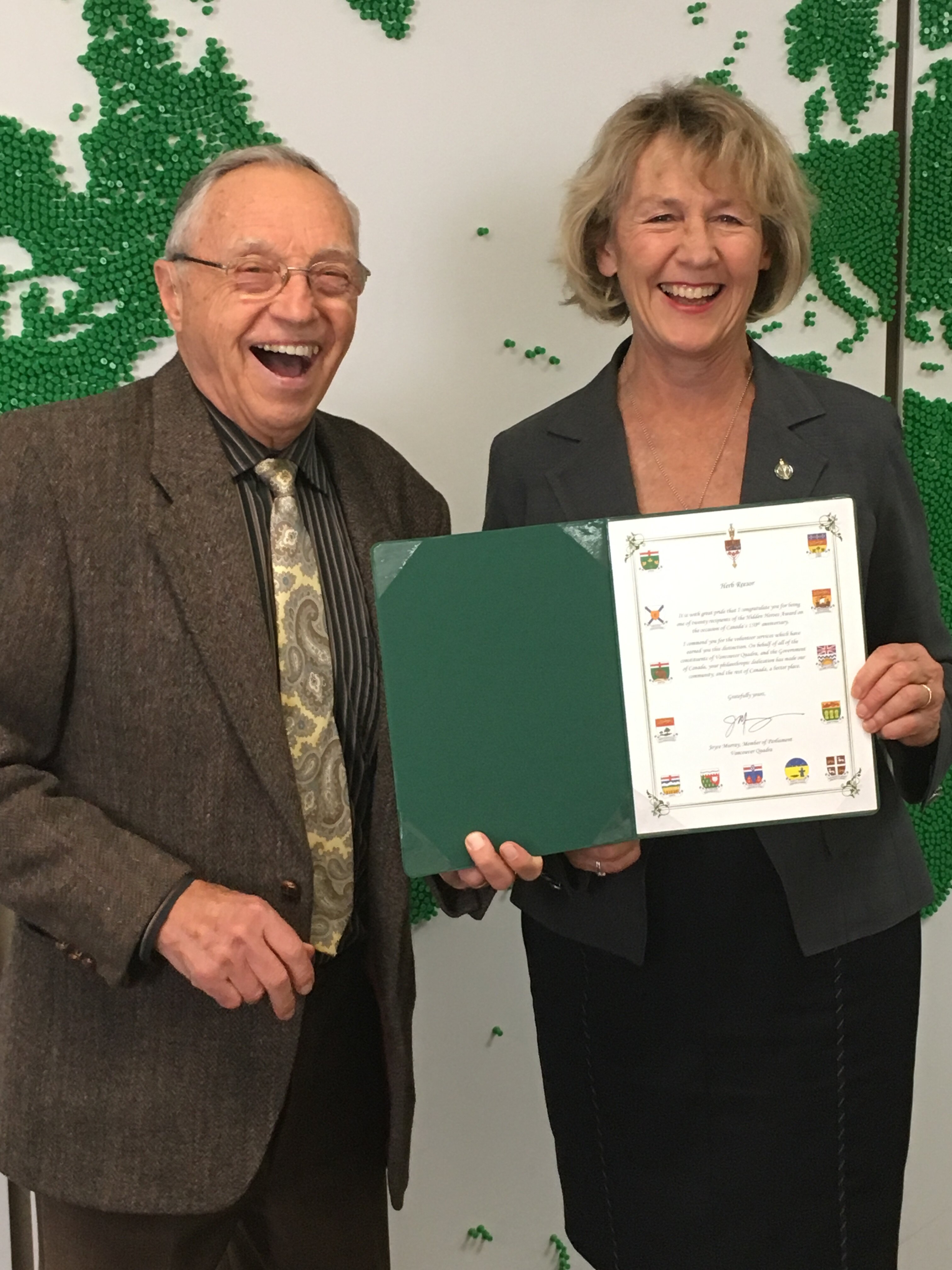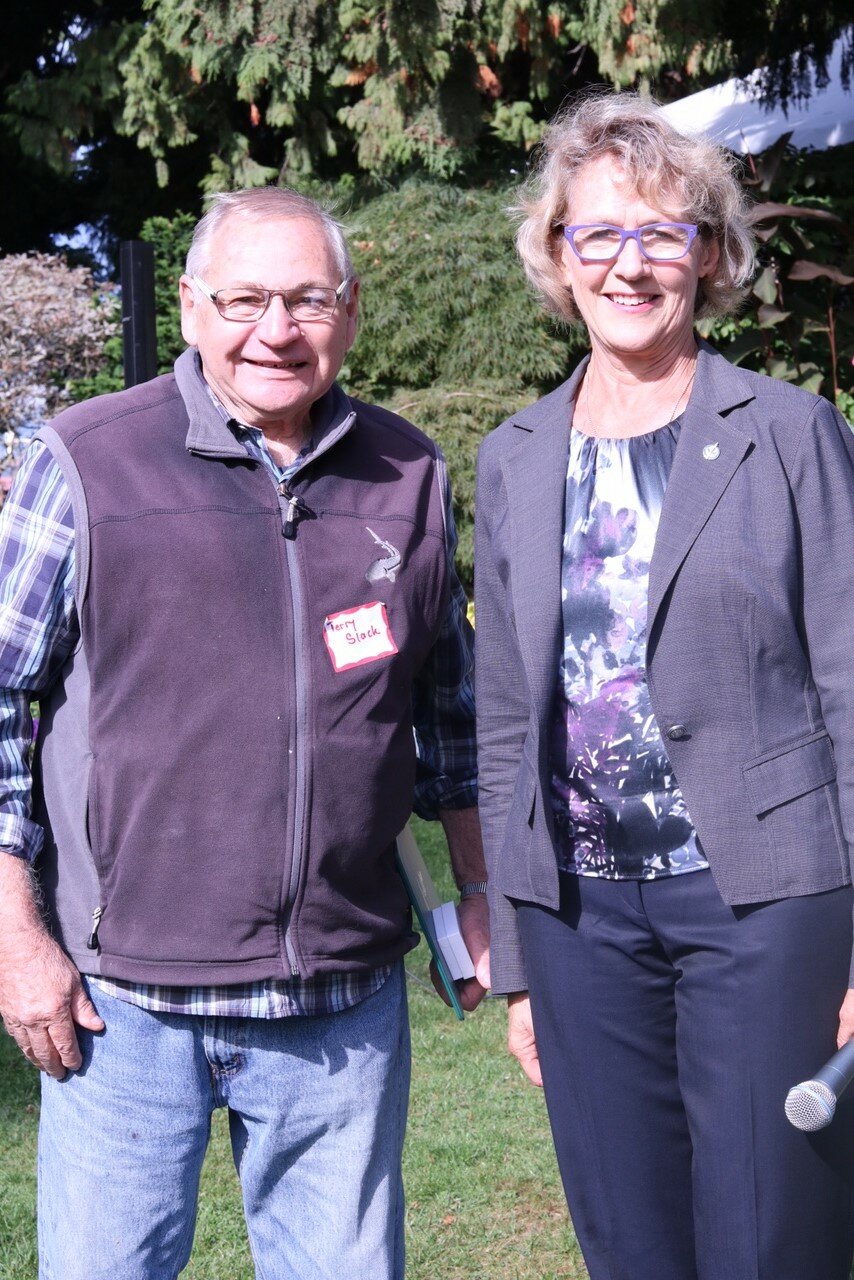 Dick Scarth and Jilian Scarth. –are both active volunteers and provide mason bee education to the community including school children. Dick is the president of the Spanish Banks Stream Keepers and they work with local elementary school children to raise and release chum fry in local streams. They also both lend a helping hand to aging friends.